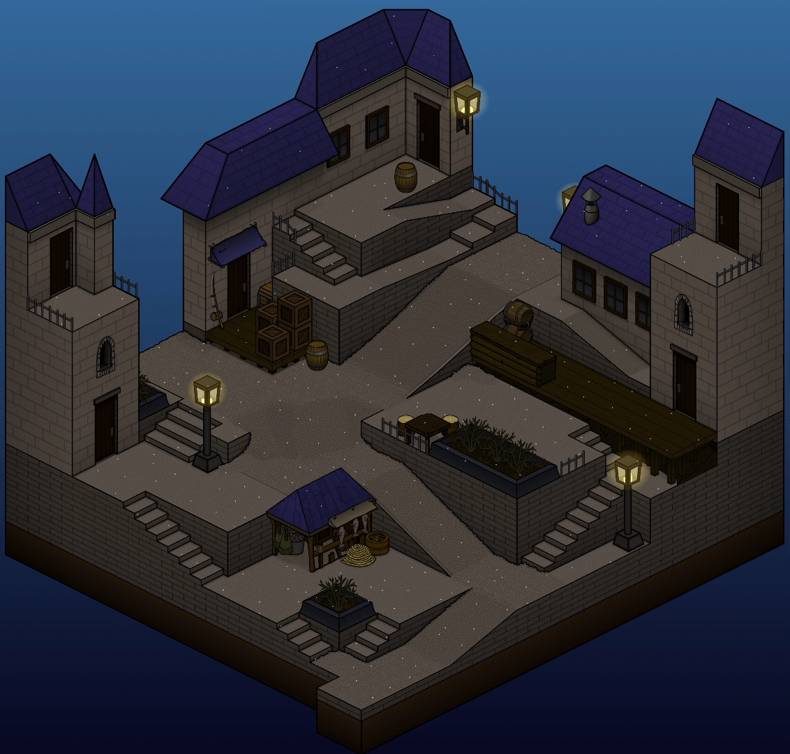 The snow effect previously mocked up in the City of Atalon preview is now implemented in-game. Unlike the rain effect, snowflakes are depth-sorted into the scene, and can fall between and behind characters and map layers.